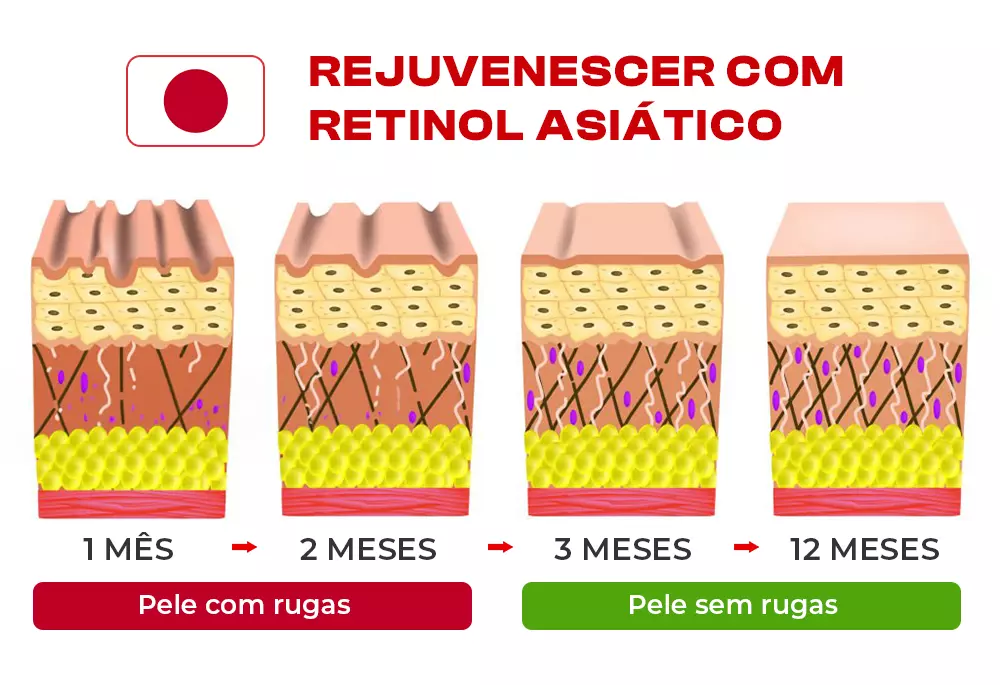 Iremos te apresentar como experimentar esse produto com tecnologia japonesa (retinol asiático), para que você finalmente recupere a firmeza e a elasticidade que tinha no auge dos seus 20 anos, e o mais importante… voltar a se sentir mais bonita e imponente!